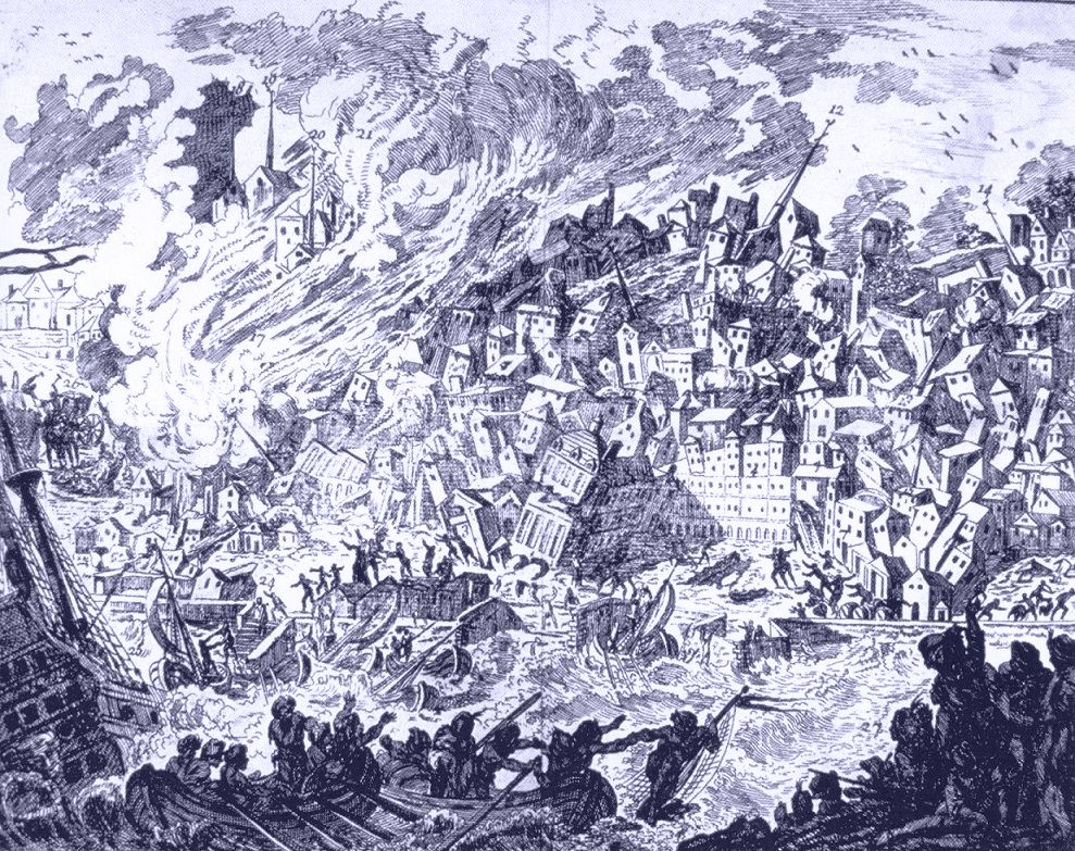 おりしも万聖節の祭日として盛儀が予定され、その時刻にはあまたの人々が教会へ参集し、聖職者の説教に恭しく聴き入るか、当日の式典を待ち受けていた。同じ目的で寺院を目指したり、用務を果たすため、道を急ぐ人々もかなり見られた。王都の住民の大半は自宅にいて、人によってはまだ床を離れない。地震と察するや、すべてが脅威、混乱、無秩序となった。